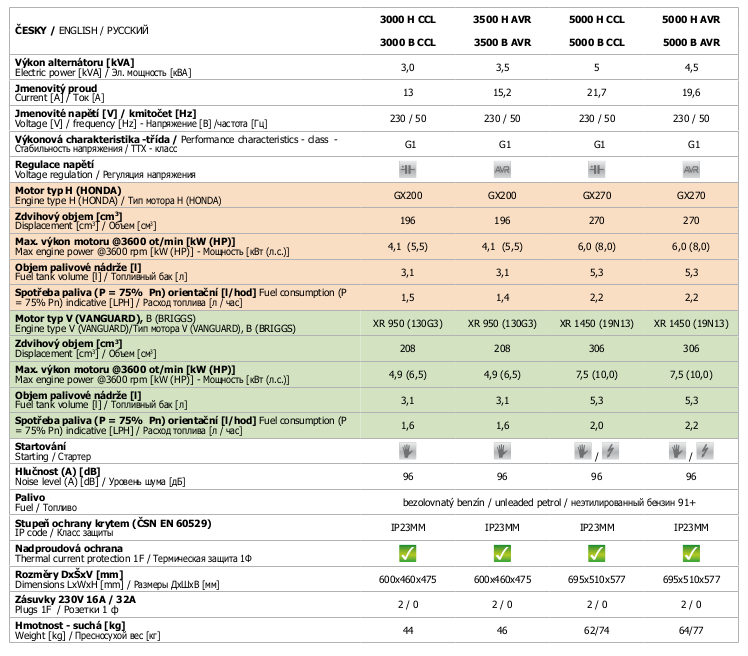 | Výkon alternátoru: | 3,0 kVA |