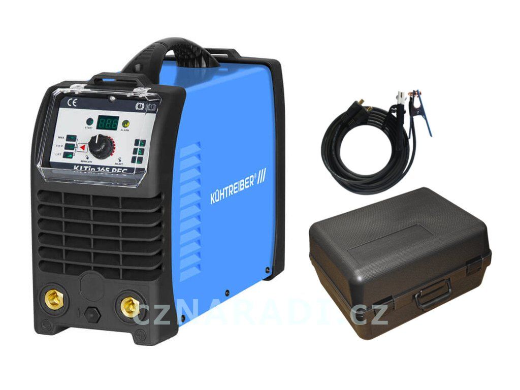 KITin 165 PFC je profesionální kompaktní přenosný podpěťový svařovací stroj, který byl navržen pro vysoce kvalitní svařování metodou MMA a TIG Lift (dotykové zapálení oblouku). Plně digitální řízení s technologií PFC (Power Factor Correction). Ta zajišťuje stabilní svařovací proces při kolísavém napětí v elektrické síti, při použití dlouhých prodlužovacích kabelů bez jakéhokoliv rozdílu na svařovacím oblouku. Stroj je schopen pracovat již od napětí 90 V (60 % podpětí) v elektrické síti. Jedná se o zdroj svařovacího proudu se strmou charakteristikou. Stroj je zkonstruován s využitím vysokofrekvenčního transformátoru s feritovým jádrem, transistory, s digitálním řízením a SMD technologií.