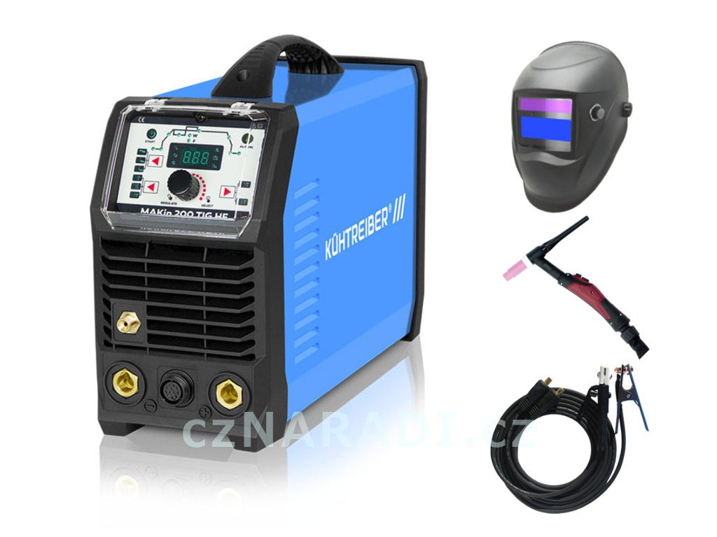 MAKin 200 TIG HF + kabely + TIG hořák + kukla